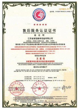 售后服務認證證書五星